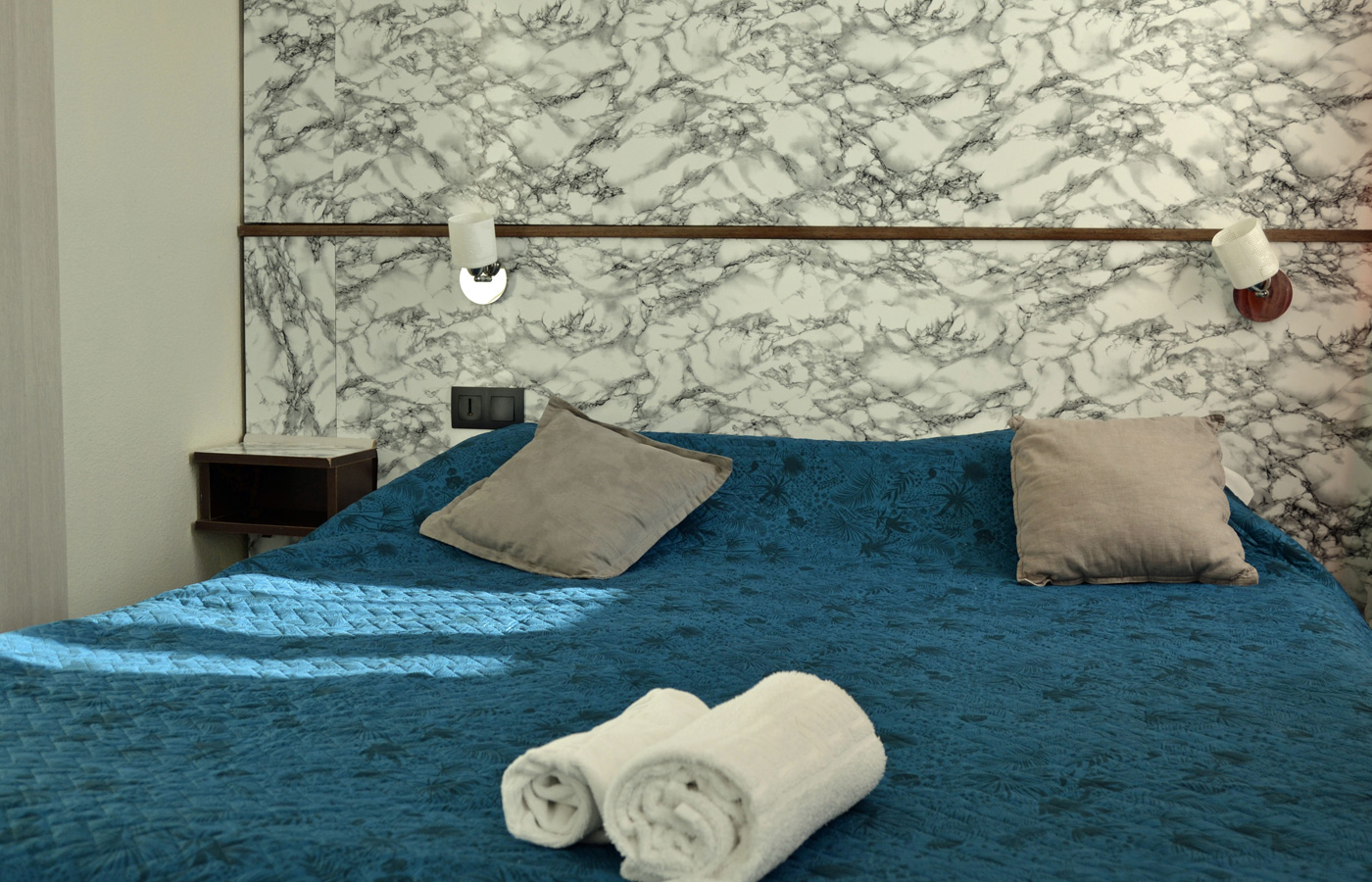 - Équipements : Climatisation réversible, Fer à repasser avec sa table (sur demande), Parkings disponibles (sur réservation), Salle de bain privative avec douche ou baignoire, Sèche-cheveux (sur demande), Télévision, Toilettes, Wifi gratuit dans tout l'hôtel